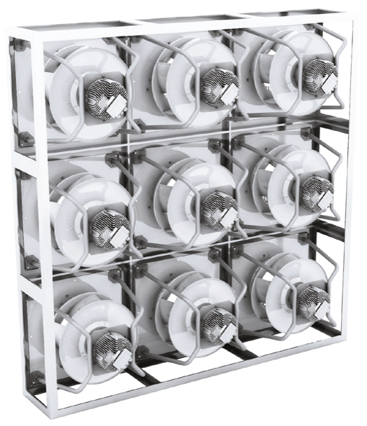 為了在通風(fēng)技術(shù)中實現(xiàn)更高的空氣性能,我們擺脫了使用單個大型風(fēng)機提供高風(fēng)量的方案,而日益傾向于將多臺風(fēng)機進行組合安裝,形成智能靈活的風(fēng)墻解決方案。