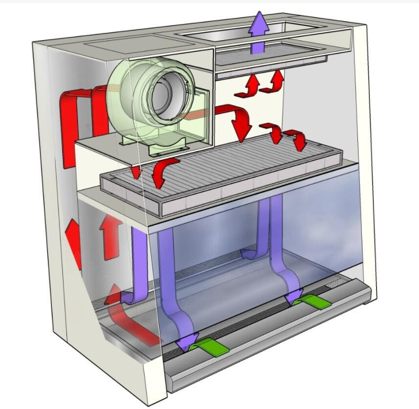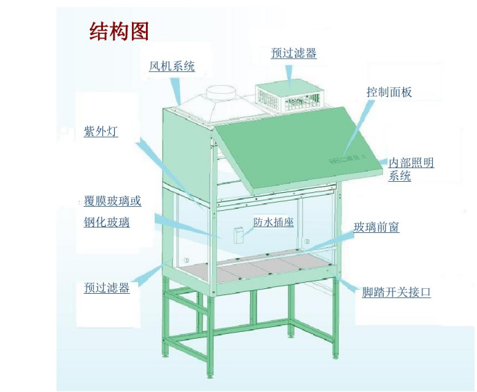 (3)柜內(nèi)的空氣也需經(jīng)過高效空氣過濾器過濾后再排放到大氣中以保護環(huán)境。