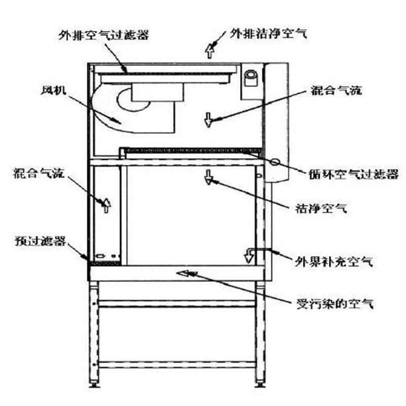 (2)外界空氣經(jīng)高效空氣過濾器過濾后進入安全柜內(nèi),以避免處理樣品被污染;