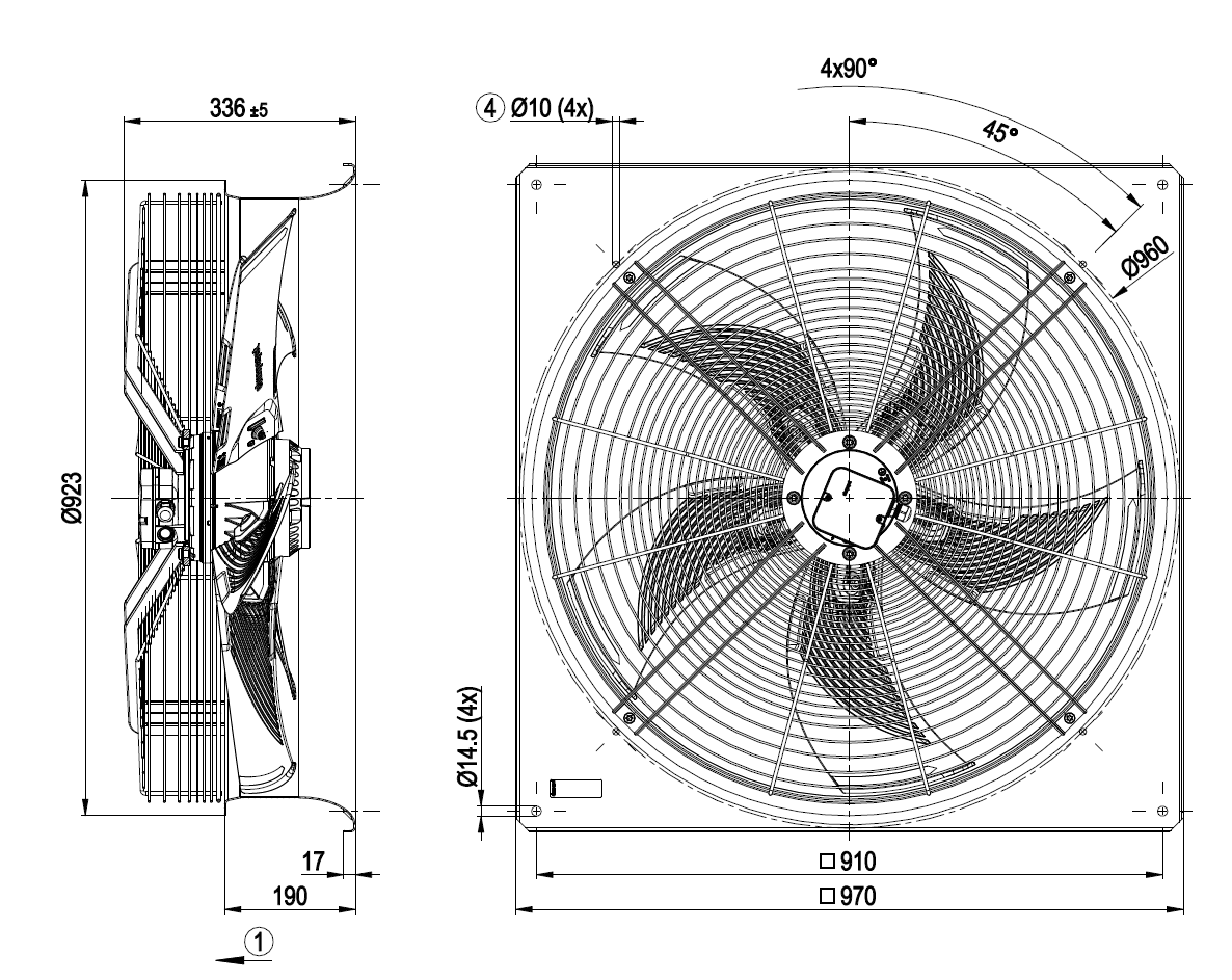我們來看離心風(fēng)機:(離心風(fēng)機軸水平安裝時,要注意引出線的朝向)