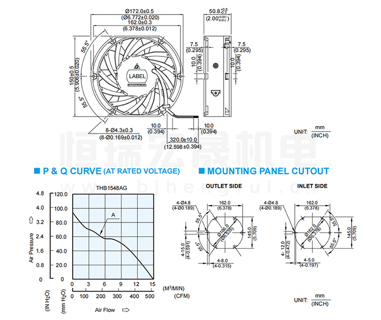 臺(tái)達(dá)Delta THB1548AG軸流風(fēng)機(jī)結(jié)構(gòu)風(fēng)量圖