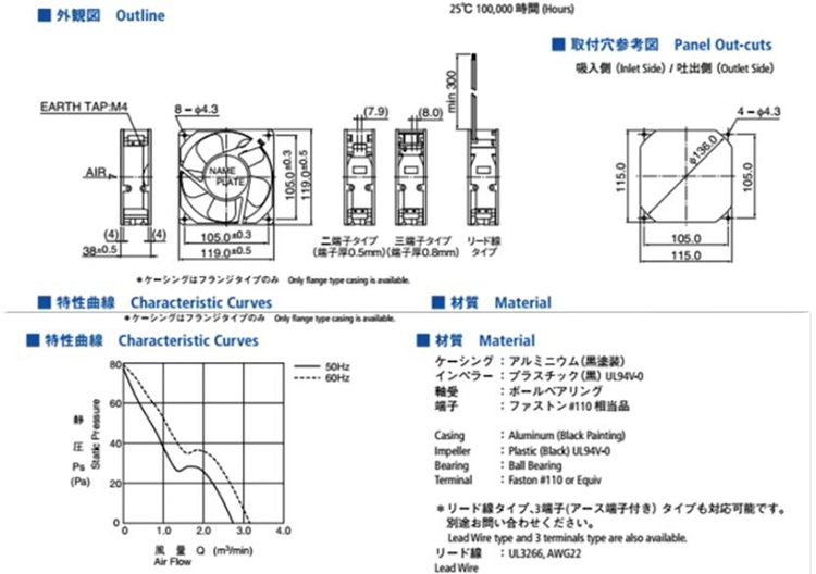 NMB-MAT美蓓亞 11938MB-B3N-EA 軸流風(fēng)機(jī)結(jié)構(gòu)風(fēng)量圖