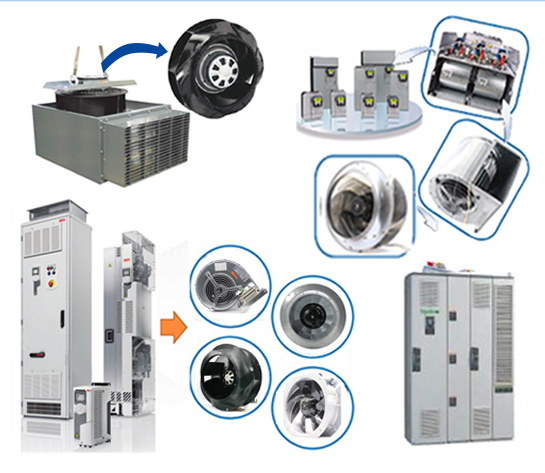 變頻器底部的大風(fēng)扇是用來給變頻器的IGBT等大功率原件散熱的,小風(fēng)扇是用來給CPU板、驅(qū)動板、電源板等電子部分散熱。離心風(fēng)機(jī)具有極低的噪音水平和高功率密度,它們可以滿足狹小空間及大風(fēng)量的需求,葉輪是根據(jù)空氣動力學(xué)和幾何要求設(shè)計(jì)的。為了獲得更佳效率,除了電壓控制的異步電動機(jī)外,還使用了高性能的Green Tech EC電動機(jī)。兩種驅(qū)動器類型均可在整個(gè)功率范圍內(nèi)使用。