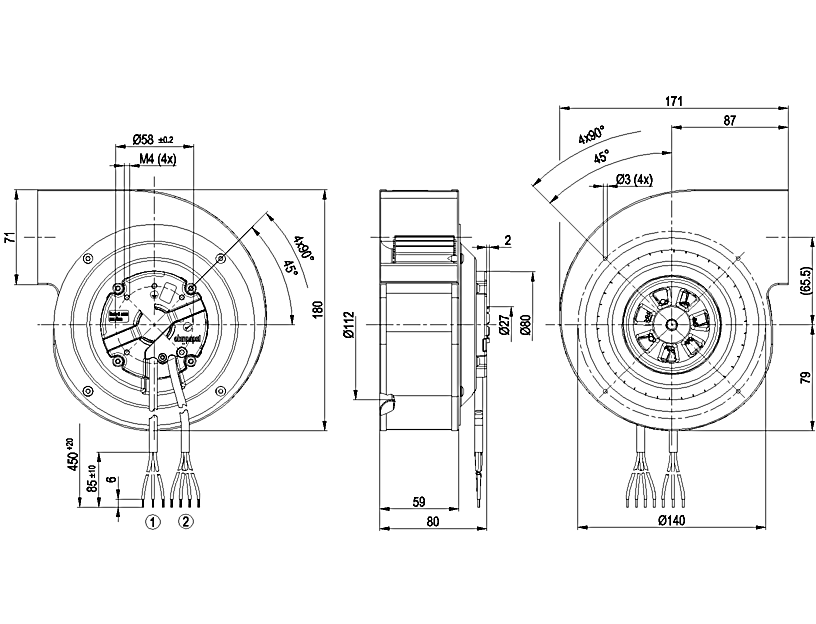 離心ebm風(fēng)機G3G133-DK03-01的規(guī)格圖