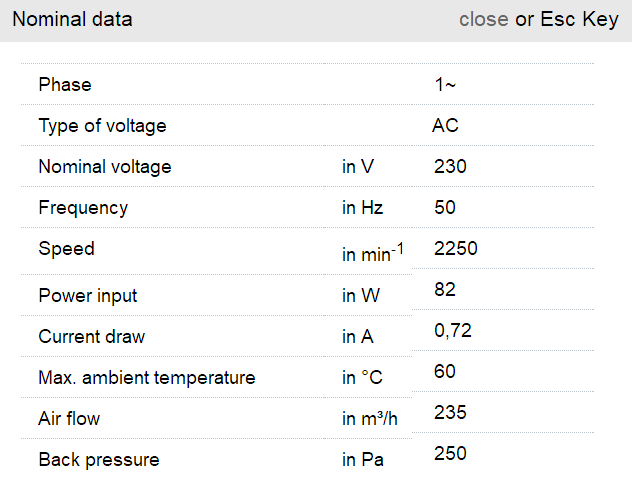 RL90-18/00風(fēng)量:42m³/h 電壓:115v 電流:6.0A 功率:19.5W 轉(zhuǎn)速:2550r/min