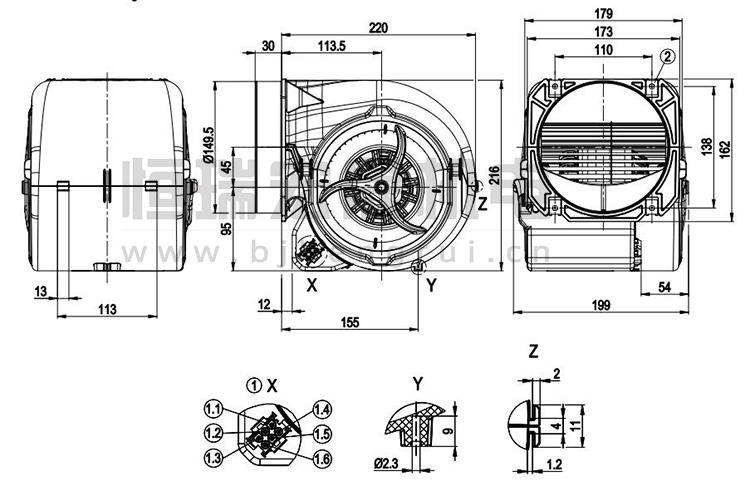 德國(guó)ebmpapst D2E146-HT67-01風(fēng)機(jī)結(jié)構(gòu)圖