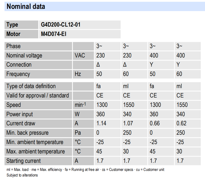 G1G140-AV17-02風(fēng)量:400m³/h 電壓:24v 電流:2.5A 功率:54W 轉(zhuǎn)速:1750r/min