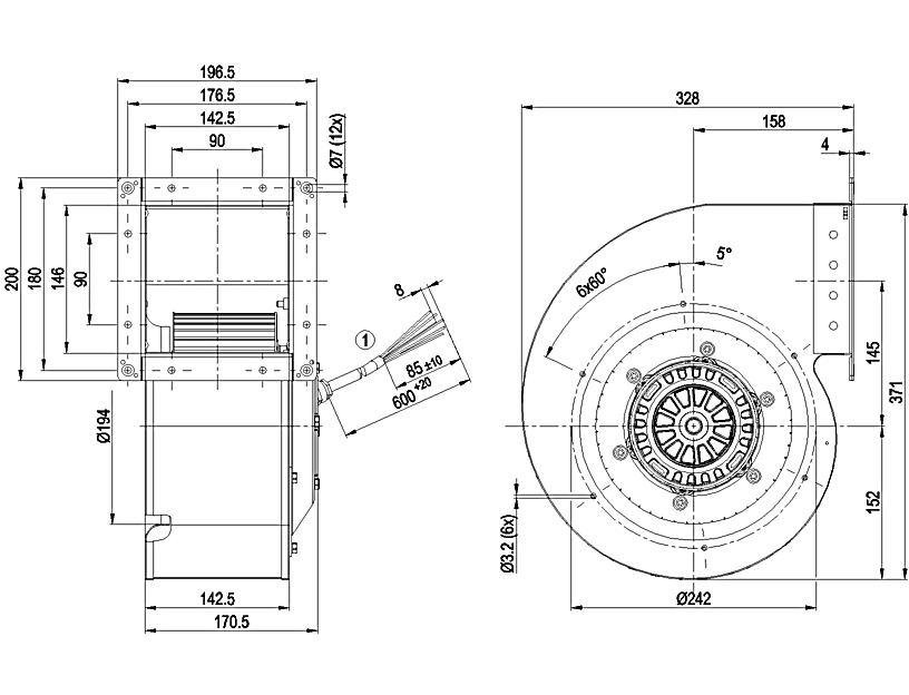 G1G140-AV17-02風量:400m³/h 電壓:24v 電流:2.5A 功率:54W 轉速:1750r/min