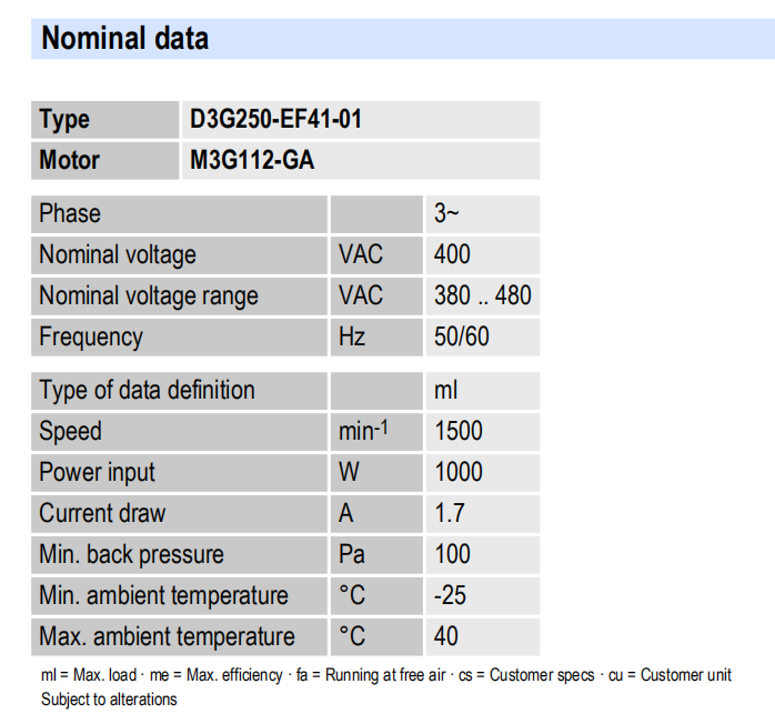 D1G133-AB29-52風量:700m³/h 電壓:24v 電流:5.6A 功率:105W 轉(zhuǎn)速: 1780r/min