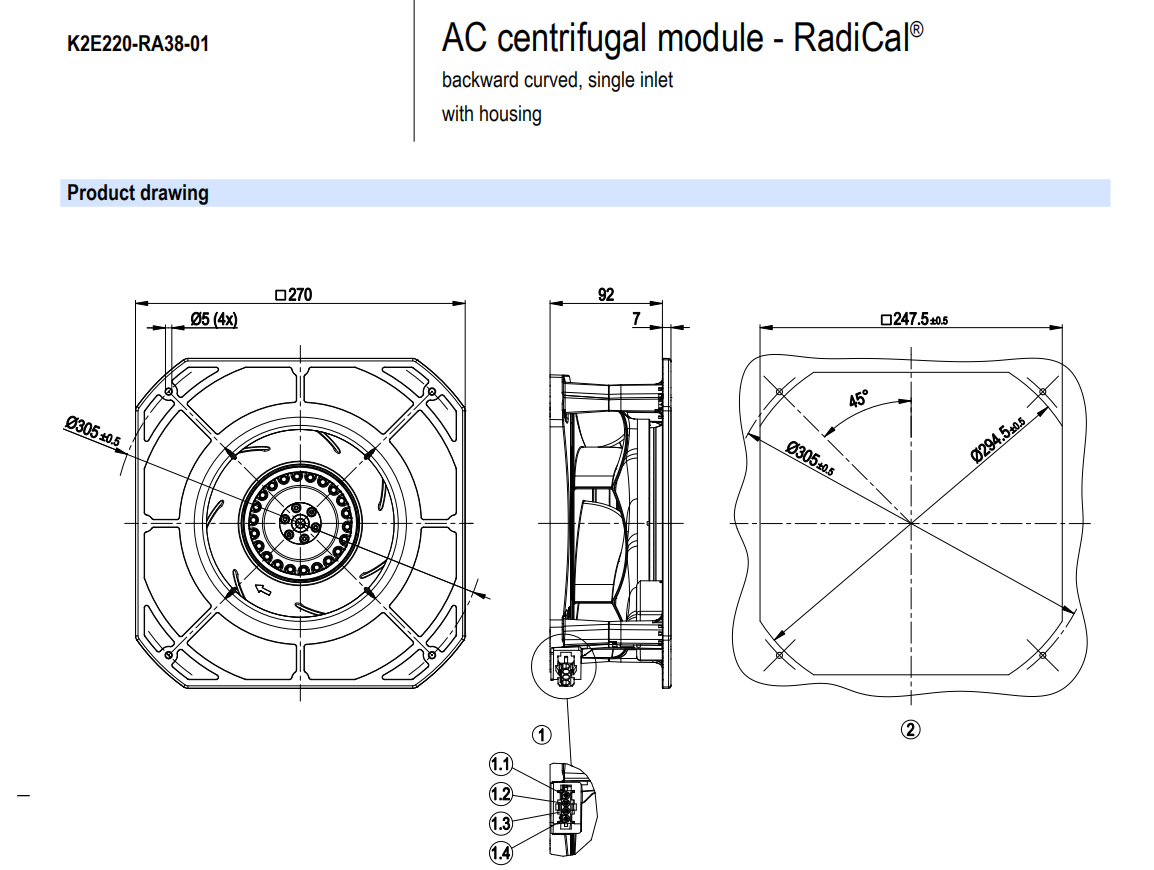 低價熱賣K2E220-RA38-01離心風機,適用于通風散熱制冷行業(yè)