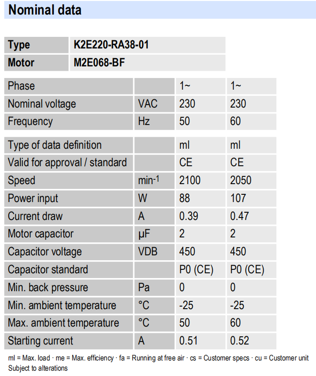 K2E250-RA50-01電壓:230V電流:1.25A功率:285W 轉(zhuǎn)速:2450r/min 重量:3.70KG