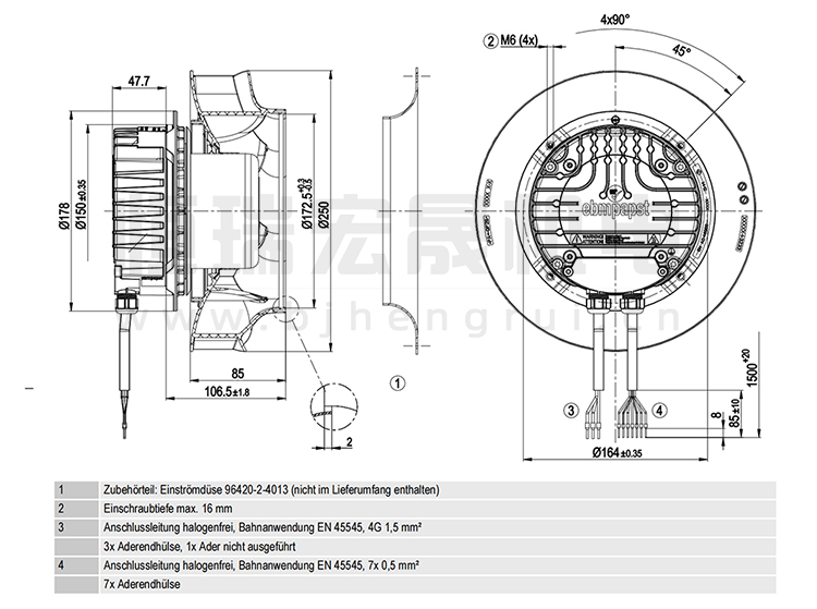 德國ebmpapst R3G250-RR15-P2 離心風機結構圖