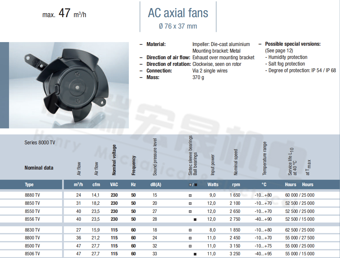 8880TV風(fēng)量:24m³/h 電壓:230v 電流:/ 功率:9W 轉(zhuǎn)速:1650r/min