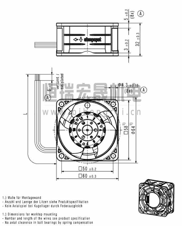 德國ebmpapst 614J/2HHPR-010軸流風(fēng)機結(jié)構(gòu)圖