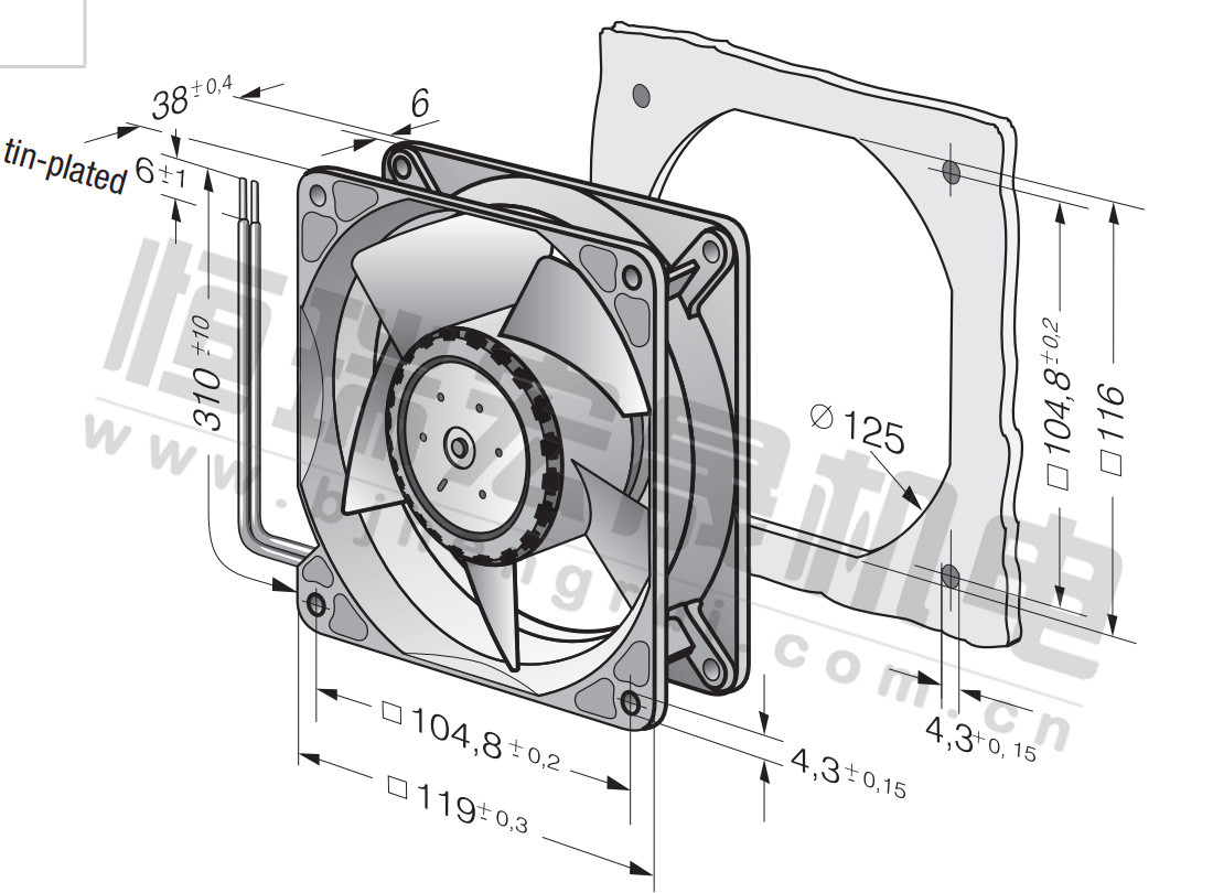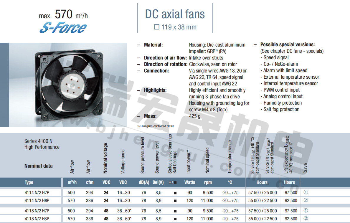 4414N 風量:205m³/h 電壓:24v 噪音:46Db 功率:5.4W 轉速:3650r/min