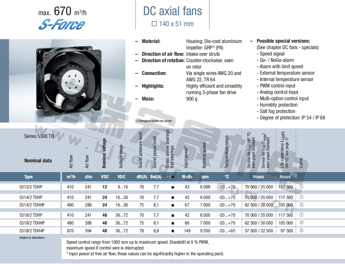5314/2TDHHP 風(fēng)量:490m³/h 電壓:24v 噪音:75Db 功率:67W 轉(zhuǎn)速:7000r/min