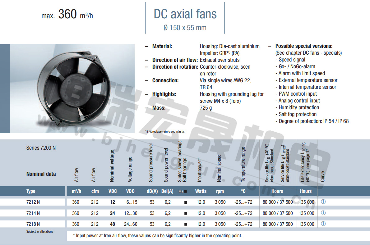 7218N 風(fēng)量:360m³/h 電壓:48v 噪音:53Db 功率:12W 轉(zhuǎn)速:3050r/min