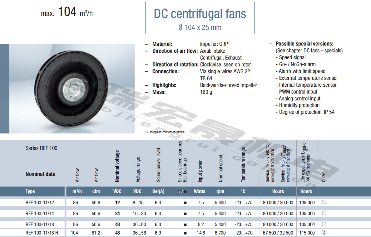德國(guó)ebm全新REF100-11/12 REF100-11/14 REF100-11/18 REF100-11/18H緊湊型風(fēng)機(jī)規(guī)格圖