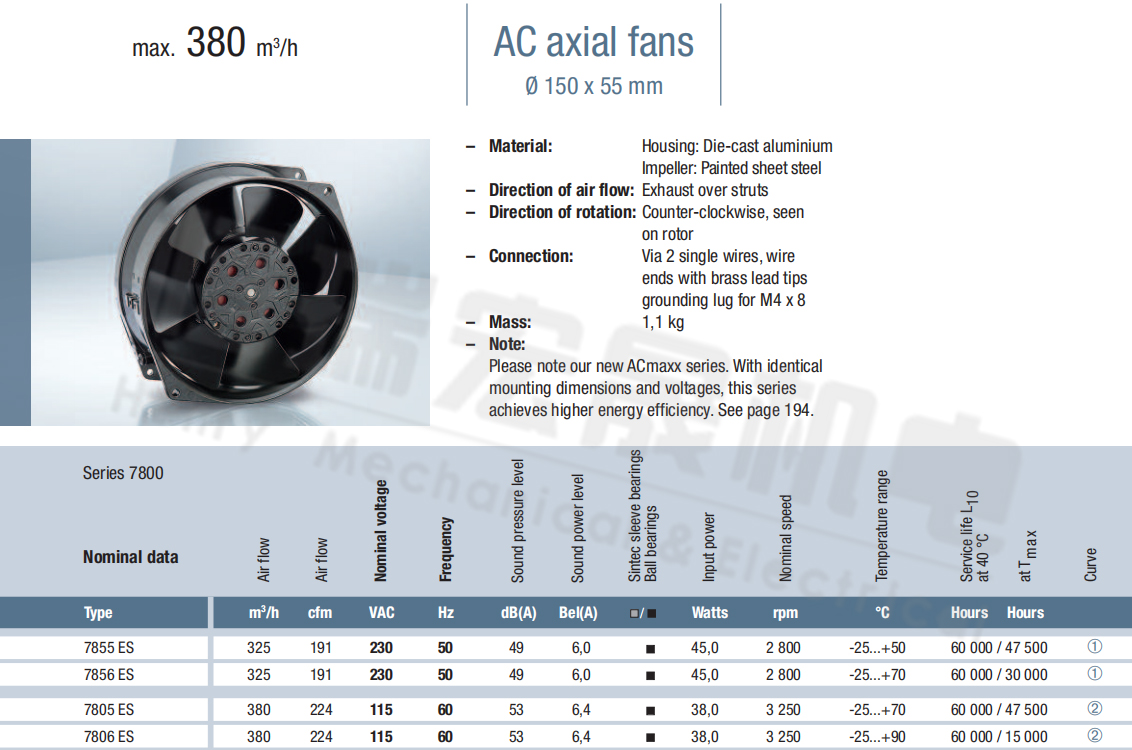 7885ES風(fēng)量:325m³/h 電壓:230v 電流:6.0A 功率:45W 轉(zhuǎn)速:2800r/min