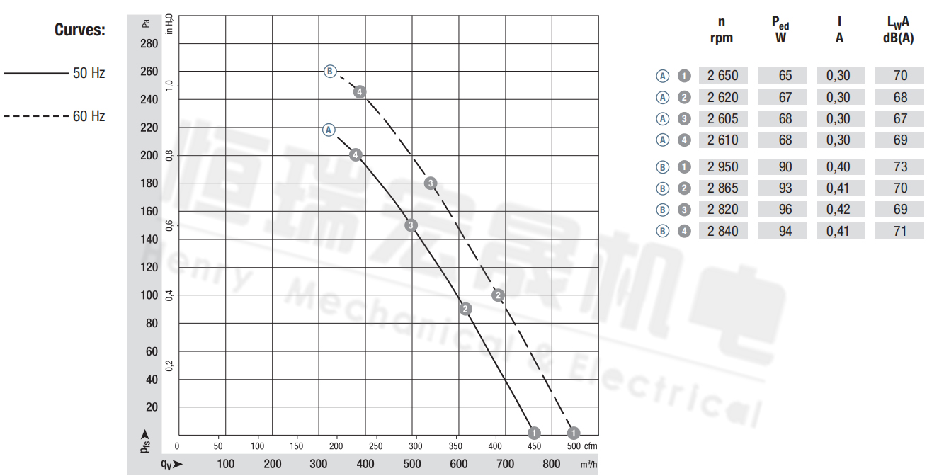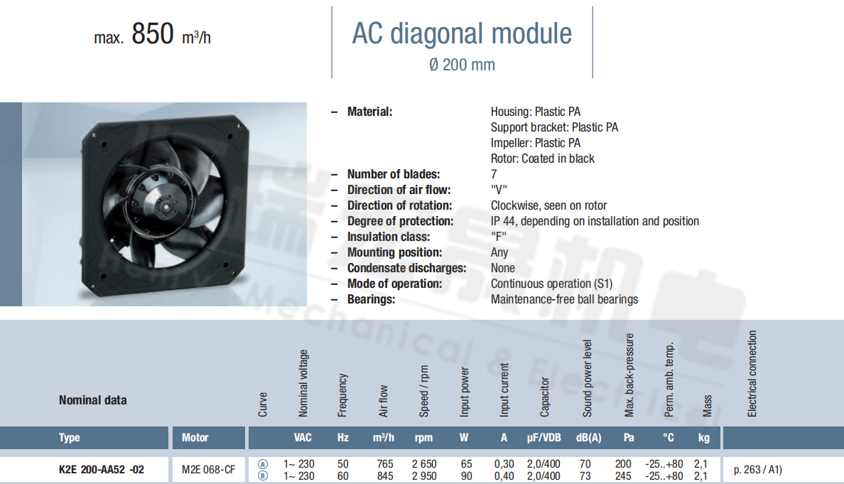 K2E200-AA52-02風量:765m³/h 電壓:230v 電流:0.30A 功率:65W 轉(zhuǎn)速:2650r/min