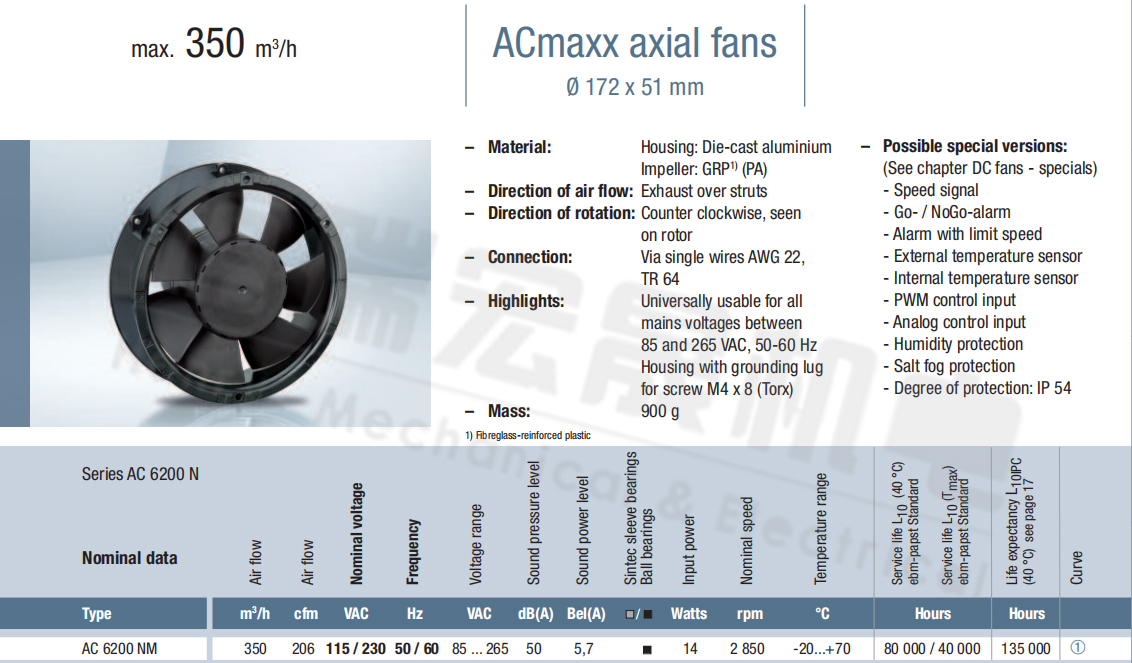 德國(guó)ebm全新AC6200NM緊湊型風(fēng)機(jī)規(guī)格圖