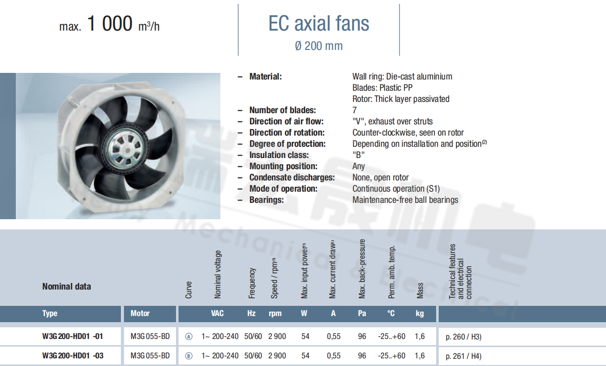 W2E200-HK38-01風(fēng)量:880m³/h 電壓:230v 電流:0.29A 功率:64W 轉(zhuǎn)速:2550r/min