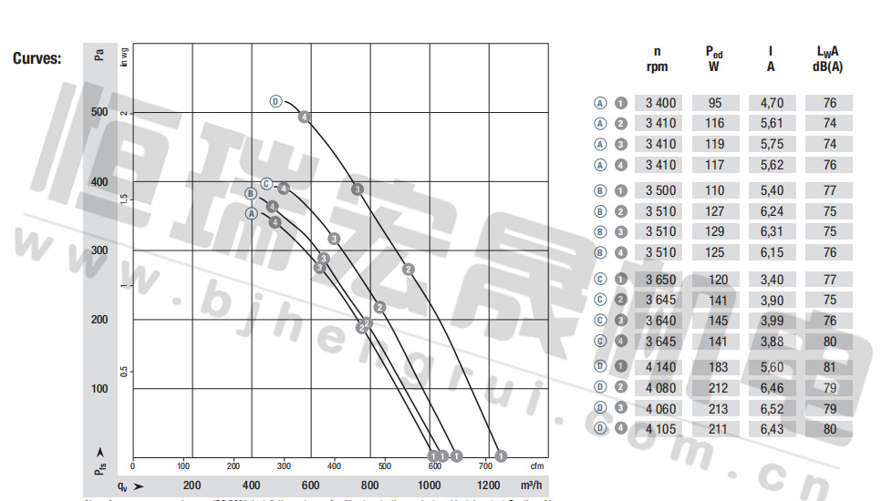德國ebm全新K1G200-AD31-02 K1G200-AD49-04緊湊型風(fēng)機(jī)曲線圖