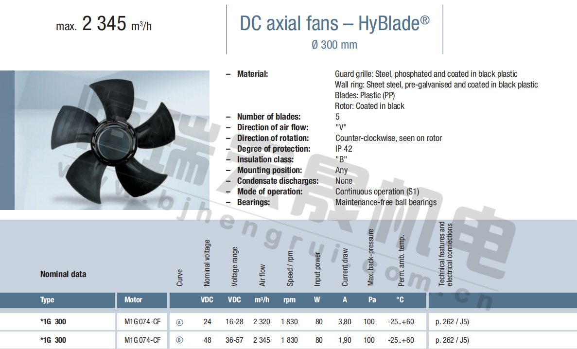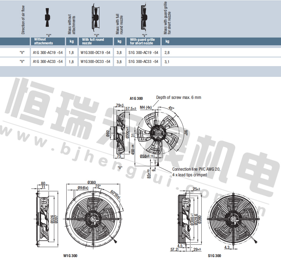 原裝緊湊型ebm風機W1G 300 A1G300 S1G300的規(guī)格圖