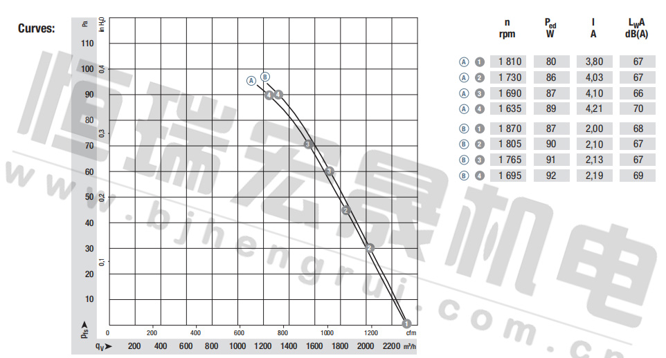 德國ebm全新W1G 300 A1G300 S1G300緊湊型風機曲線圖
