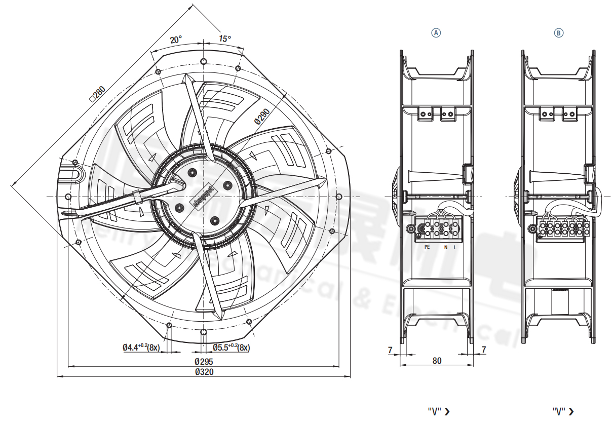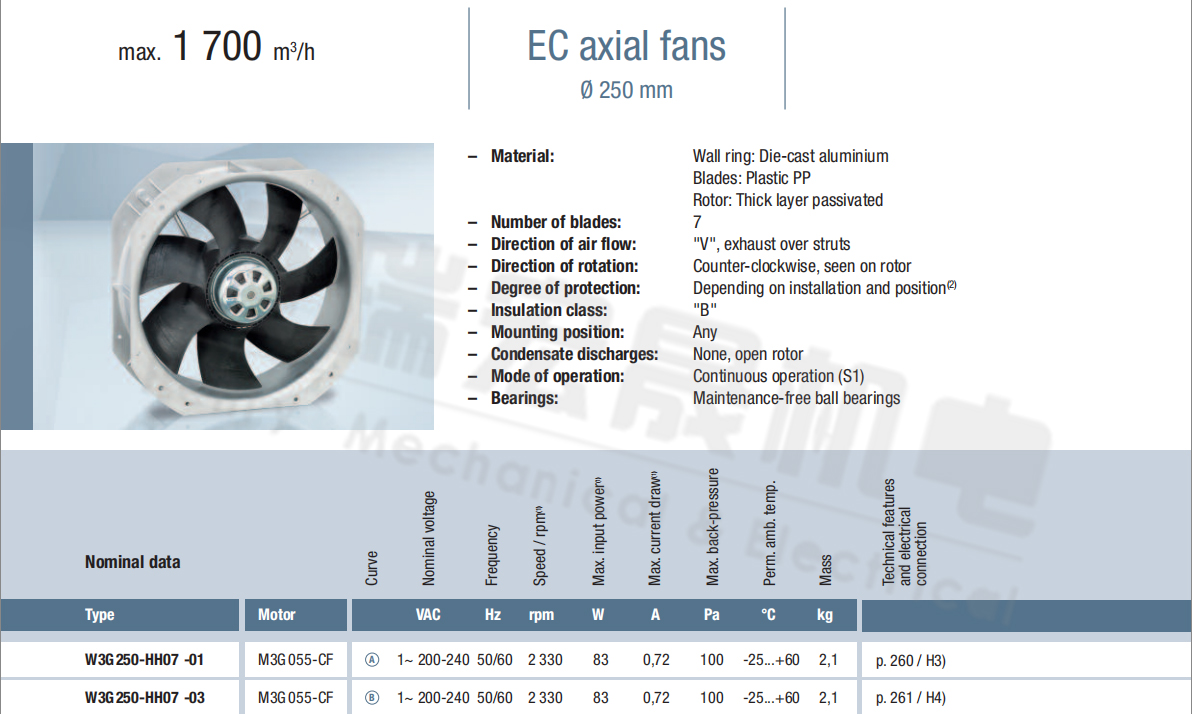 德國ebm全新W3G250-HH07-01 W3G250-HH07-03緊湊型風機規(guī)格圖