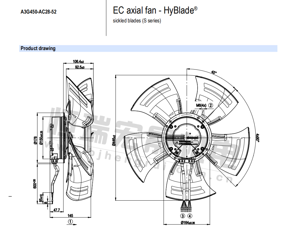 北京恒瑞宏晟低價供應A3G450-AC28-52軸流風機,適用于通風散熱制冷行業(yè)