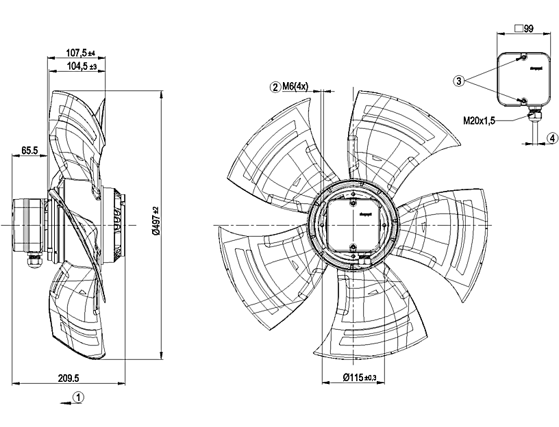 原裝軸流ebm風(fēng)機(jī)A4E500-AM03-01的規(guī)格圖