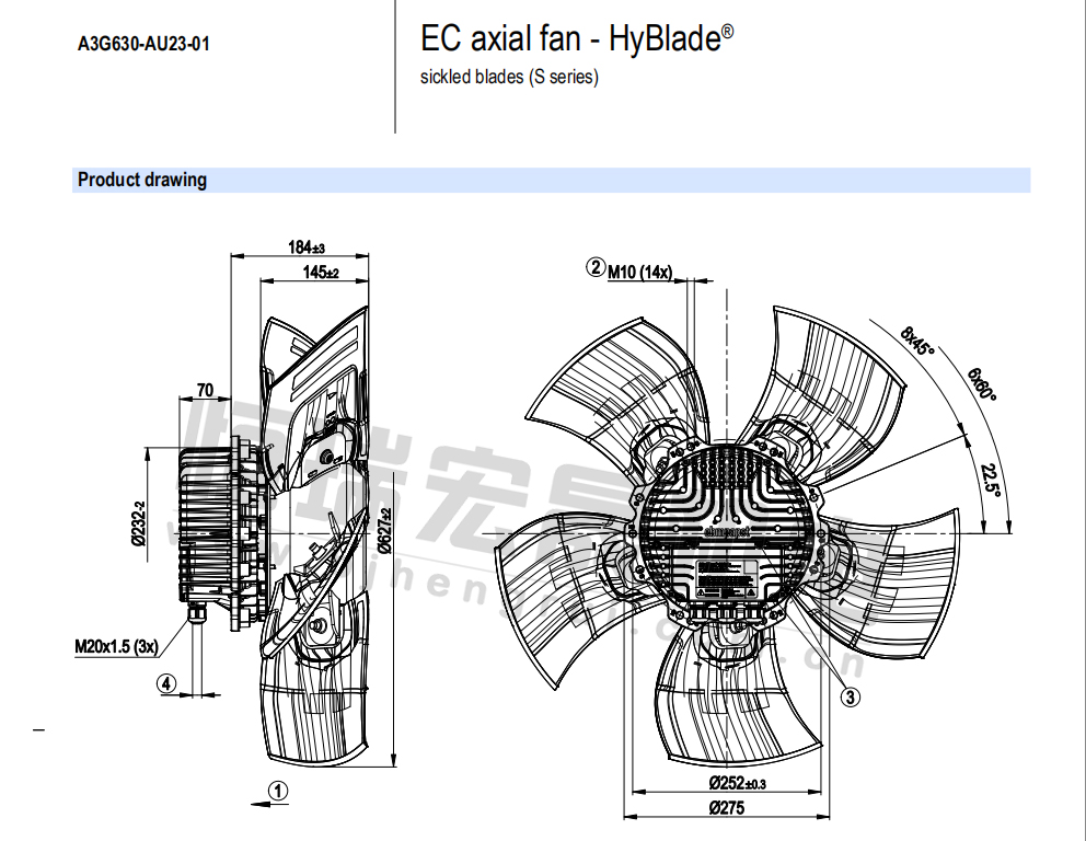 德國(guó)ebm全新A3G630-AU23-01軸流風(fēng)機(jī)規(guī)格圖
