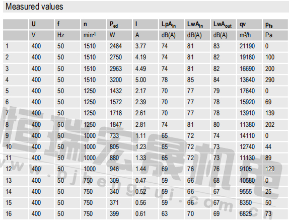 原裝軸流ebm風(fēng)機(jī)A3G630-AU23-01的曲線圖