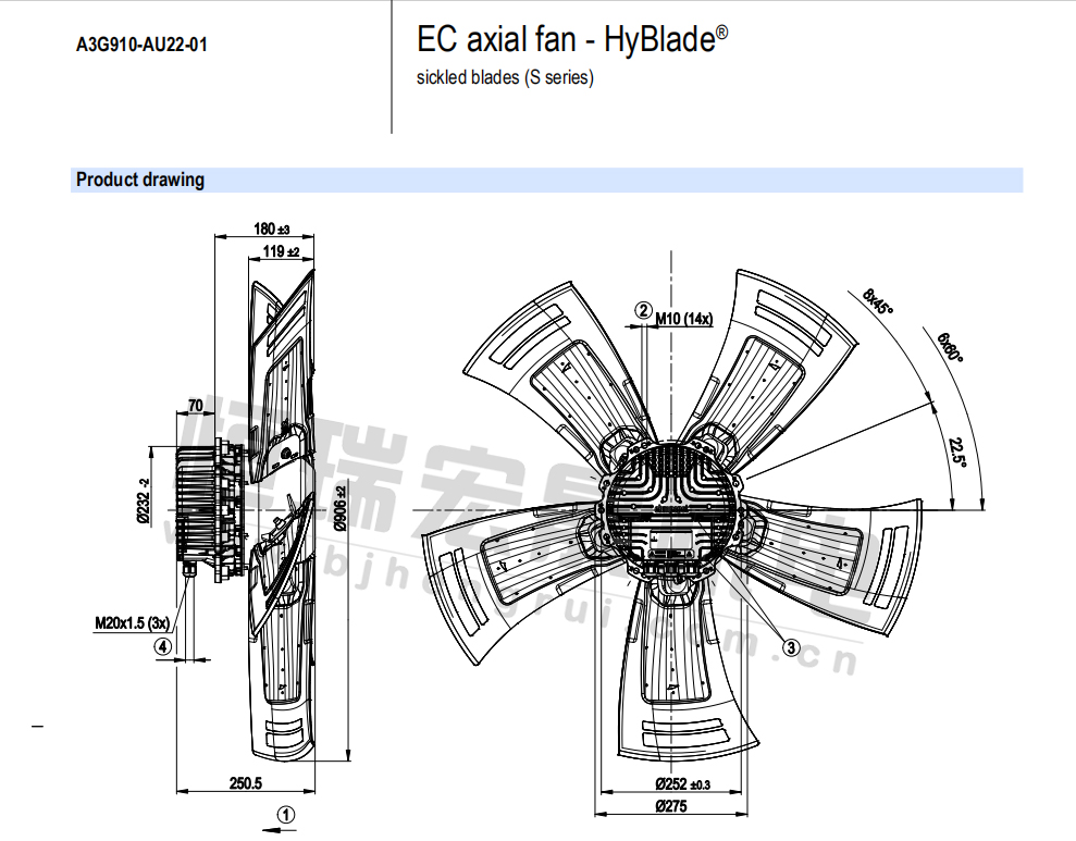 德國ebm全新A3G910-AU22-01軸流風(fēng)機(jī)規(guī)格圖