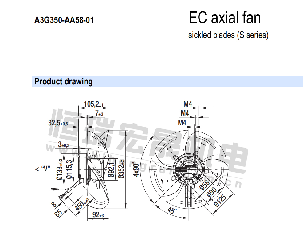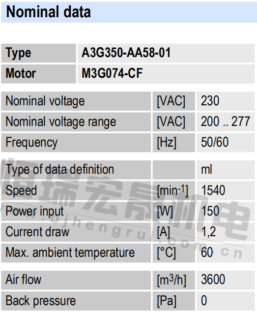 原裝軸流ebm風(fēng)機(jī)A3G350-AA58-01的規(guī)格圖