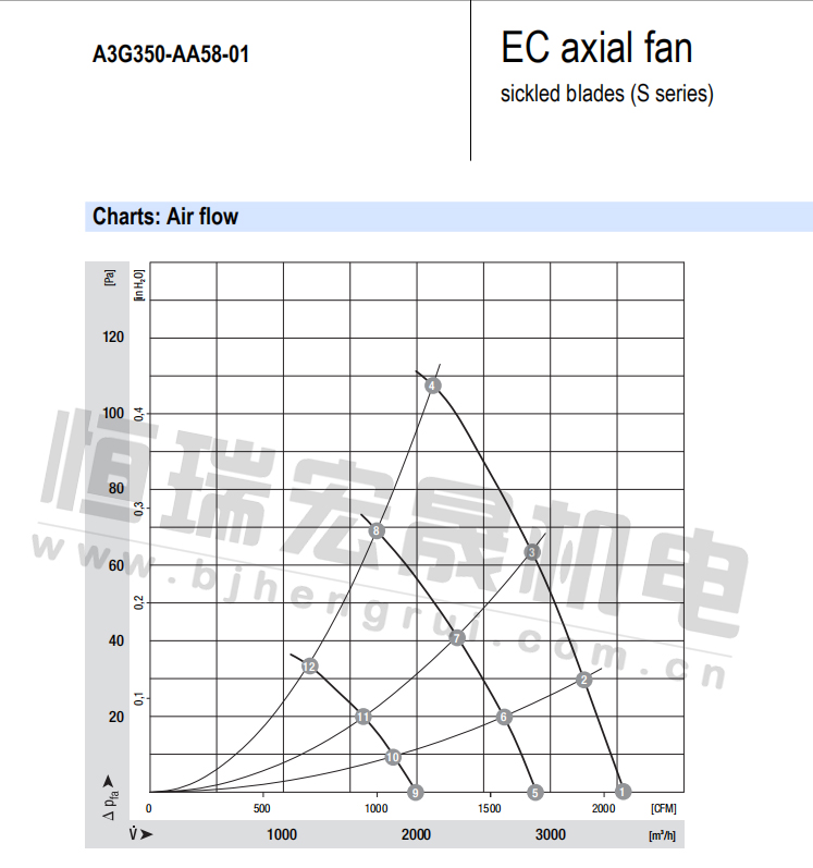 德國ebm全新A3G350-AA58-01軸流風(fēng)機(jī)曲線圖