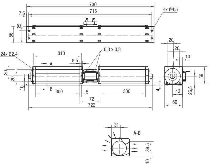 橫流ebm風(fēng)機(jī)QL4/3030-2124的規(guī)格圖