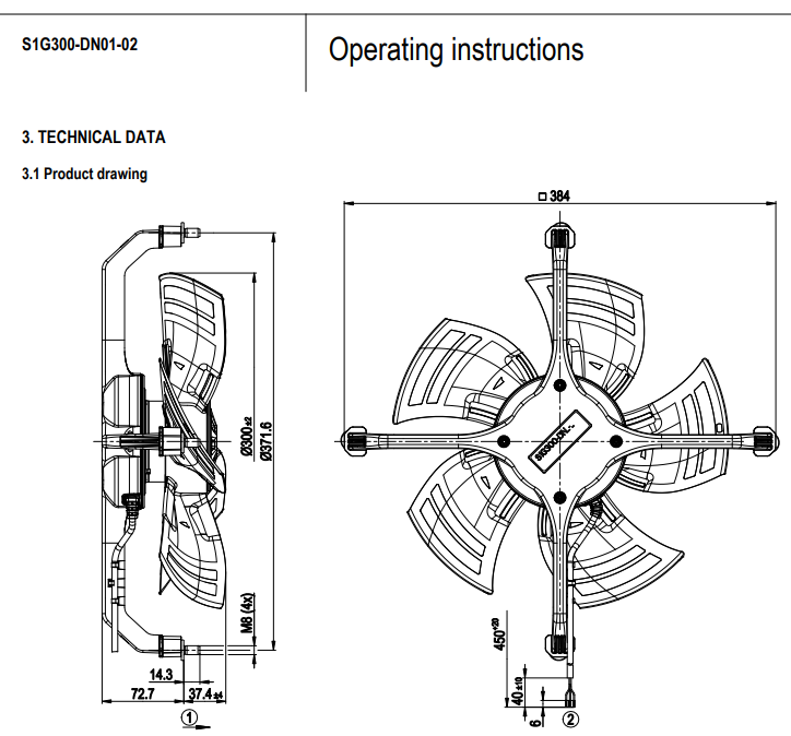 原裝正品軸流ebm風(fēng)機(jī)S1G300-DN01-02的規(guī)格圖