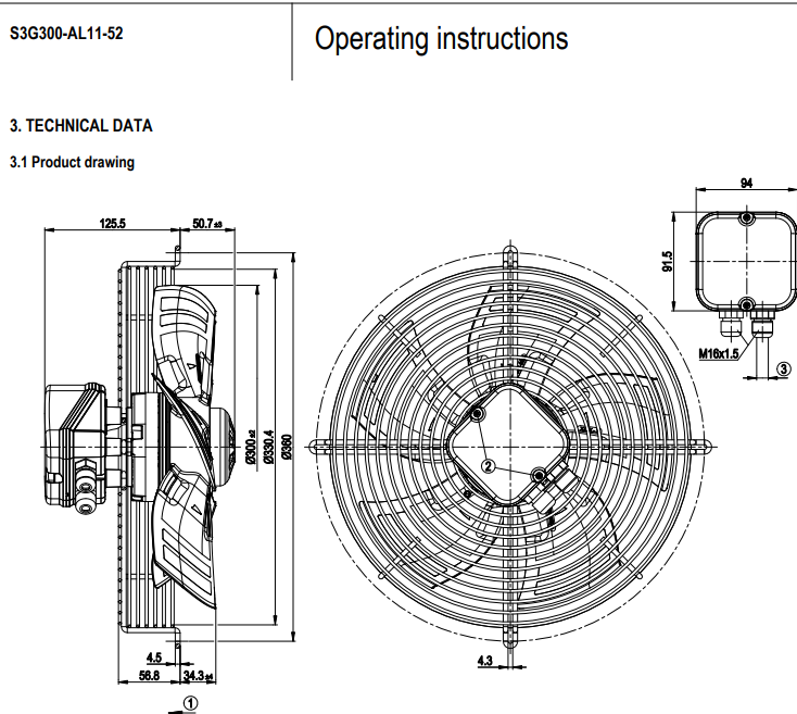 原裝正品軸流ebm風(fēng)機(jī)S3G300-AL11-52的規(guī)格圖