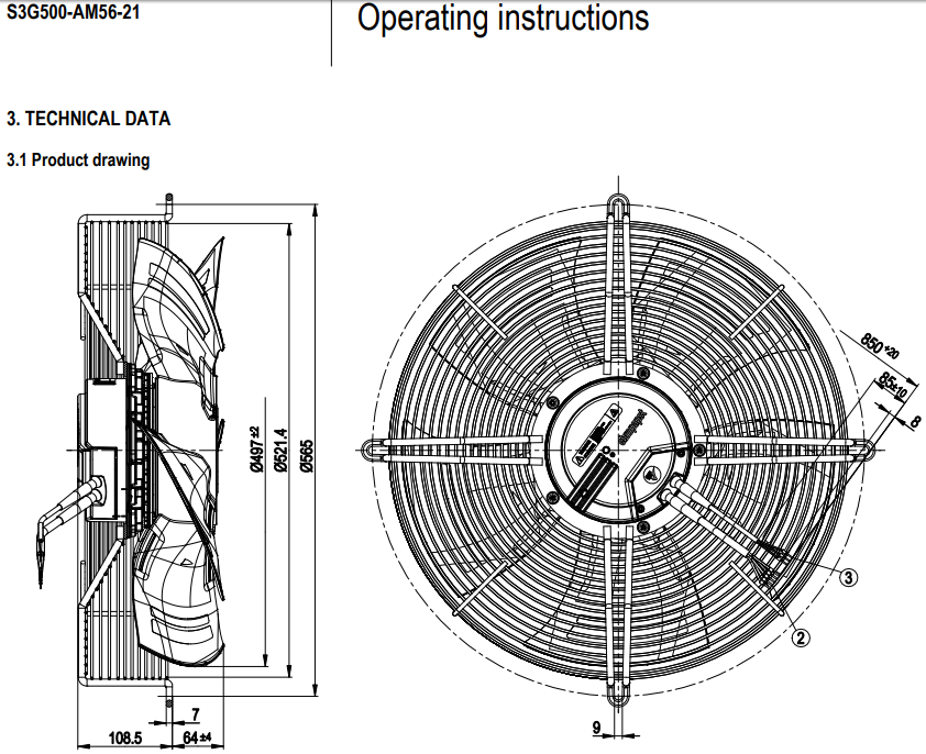 德國ebm全新S3G500-AN33-01軸流風(fēng)機(jī)規(guī)格圖