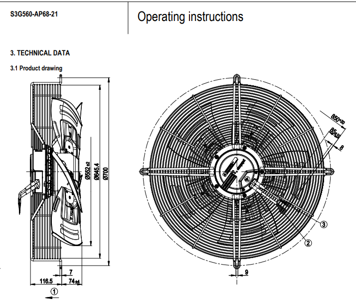 原裝正品軸流ebm風(fēng)機(jī)S3G560-AP68-21的規(guī)格圖