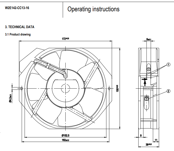 德國ebm全新W2E142-CC13-16軸流風(fēng)機(jī)規(guī)格圖