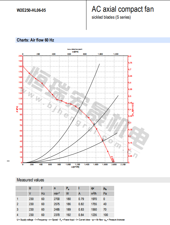德國(guó)ebm全新W2E250-HL06-05軸流風(fēng)機(jī)曲線圖