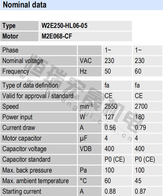W3G250-HH07-01電壓:230v 電流:0.72A 功率:83W 轉(zhuǎn)速:2330r/min