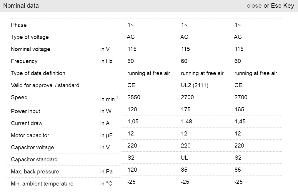 W2E250-HP08-01風量:1740m³/h 電壓:115v 電流:1.10A 功率:125W 轉(zhuǎn)速:2375r/min
