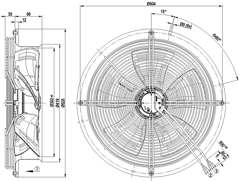 原裝正品軸流ebm風(fēng)機(jī)W3G400-CN04-32的規(guī)格圖