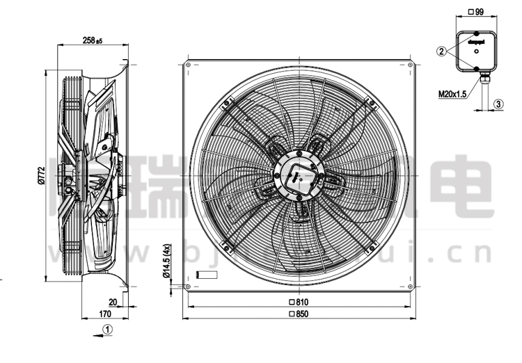 德國ebmpapst  W6D710-GH01-01 軸流風(fēng)機結(jié)構(gòu)圖