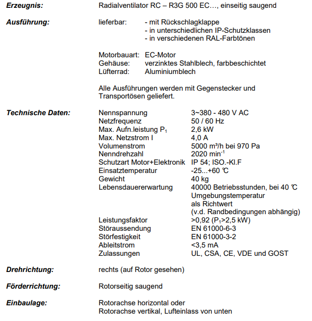 離心風(fēng)扇RC-R3G 500 EC…,單側(cè)吸風(fēng)
