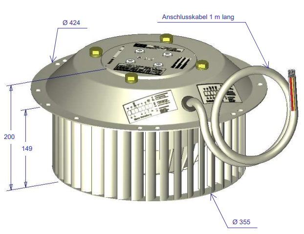 - 帶有熱觸點的電壓可控外轉子電機,常壓和特殊電壓下的三相電流